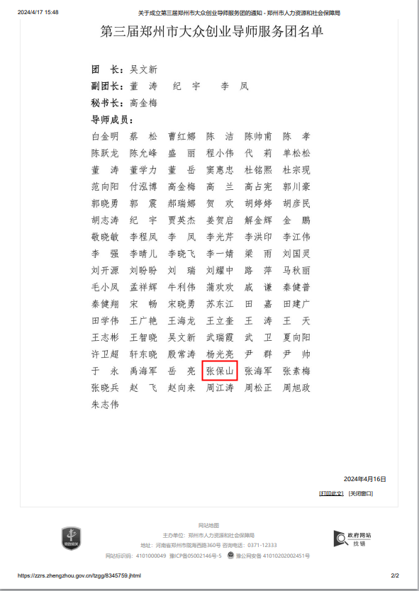 此次我司領導張保山成功入選大眾創業導師服務團,是對他在創業領域卓越貢獻的有力證明,也是我公司踐行社會責任、推動創新創業的又一重要里程碑。未來,我們將一如既往地支持領導在大眾創業導師服務團的工作,期待他以更加飽滿的熱情、更加專業的知識,為更多的創業者點燃夢想之火,鋪就成功之路。讓我們共同期待,在鄭州市大眾創業導師服務團引領下,更多創新火花將被點燃,更多創業夢想將照進現實!再次感謝所有關心和支持我公司發展的朋友們。讓我們攜手并進,共創輝煌!