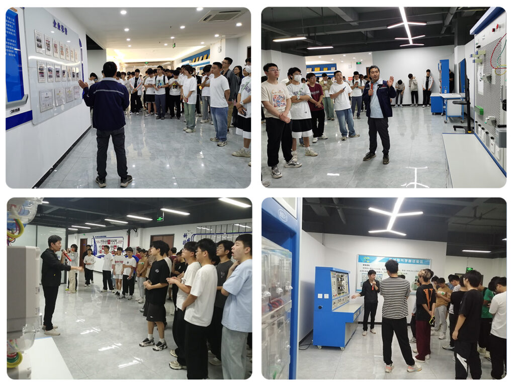 能創科技科普教育基地不僅配備了先進的電力電氣教學培訓設備、精密的儀器儀表,還有智能電網相關的模擬仿真系統,為同學們提供了與行業前沿技術親密接觸的寶貴機會。基地中還展示了公司在電力領域的科研成果,讓同學們見證了科技成果轉換,這樣的實訓不僅讓同學們能夠將所學理論知識應用于實際,還讓他們提前感受到未來職業環境,這對于提升學生的綜合素質和就業競爭力具有重要意義。